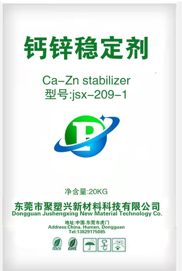 JSX-209-1 là chất ổn định hợp chất bột canxi và kẽm, có khả năng chịu nhiệt tuyệt vời, màu sắc đẹp, hiệu ứng dẻo hóa tốt, không dễ kết tủa, không dính vào khuôn, không bị mất sơn; đáp ứng các tiêu chuẩn ROHS, REACH, v.v.
